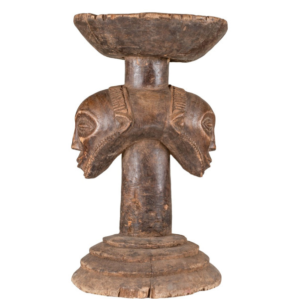 Tento jedinečný model je drevená stolička Luba Caryatide z Konžskej demokratickej republiky a pochádza z polovice 20. storočia. Táto stolica meria 28x27,5x51 cm. Je vyrezávaný v tvare ľudskej postavy s kruhovou základňou a rovnako kruhovým podnosom umiestneným na hlave postavy. Takáto stolica je symbolom moci a autority medzi vodcami v kultúrach Luba. Socha je podrobná, zobrazuje rysy tváre a ozdobné vzory na tele.