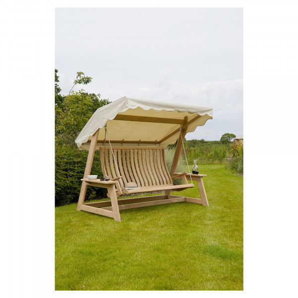 TentoRoyal Swing Alexander Rose zaisťuje chvíľku relaxácie vďaka svojmu ergonomickému tvaru. Trojmiestna hojdačka vybavená na oboch stranách nábytku malými zásobníkmi na usporiadanie nápojov pre aperitívy. Je tiež vybavený plachtou na ochranu pred slnečnými lúčmi. Meria 149x223x170 cm.
