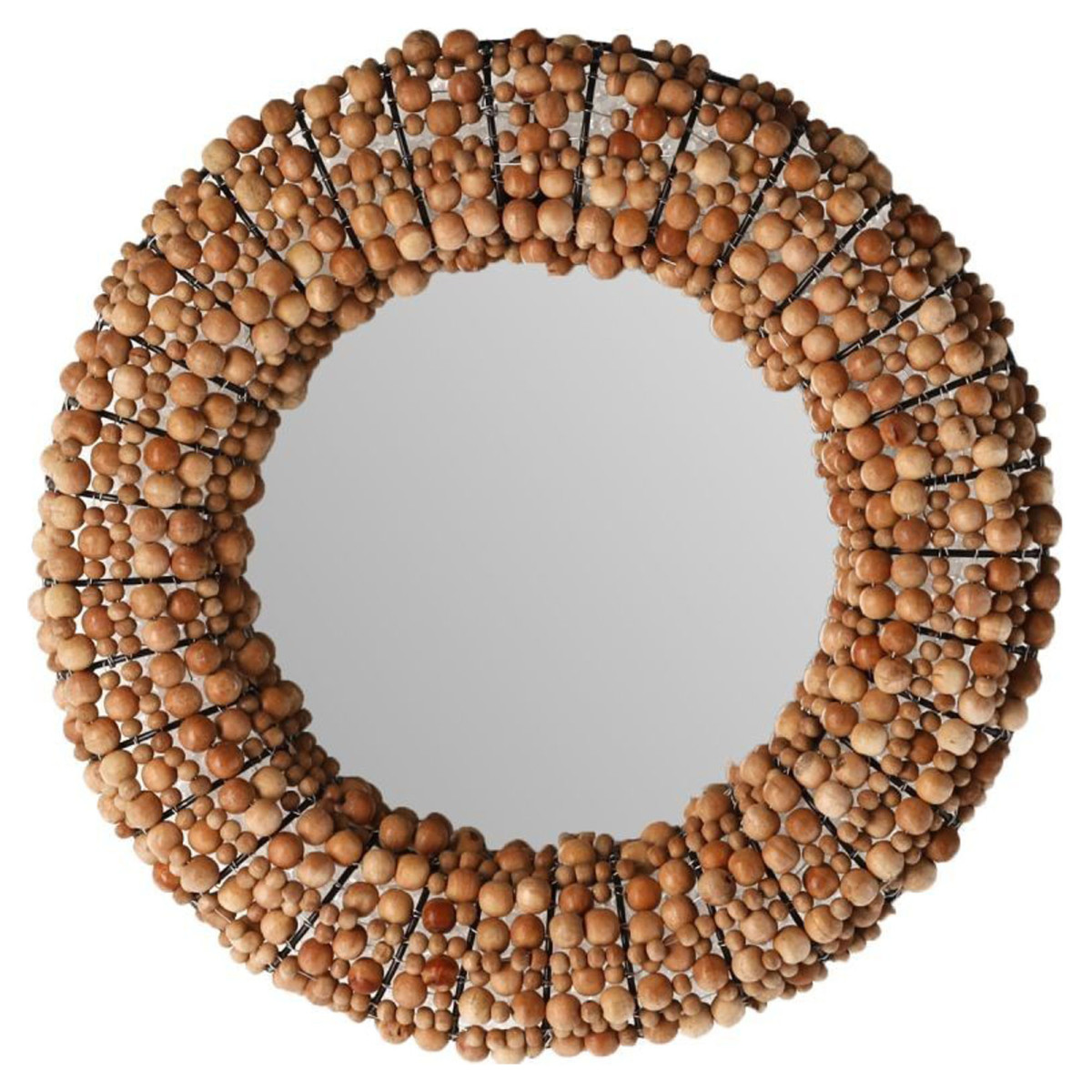 Zrkadlo Perles je nádherné zrkadlo s elegantným a nadčasovým dizajnom. Jeho železný rám zdôrazňuje remeselnú kvalitu zrkadla. Ozdobné korálky usporiadané pravidelne okolo rámu dodávajú sofistikovaný nádych. Vďaka svojej veľkosti ø46 cm ponúka toto zrkadlo všestrannú estetiku, ktorá doplní interiérový dizajn s eleganciou.